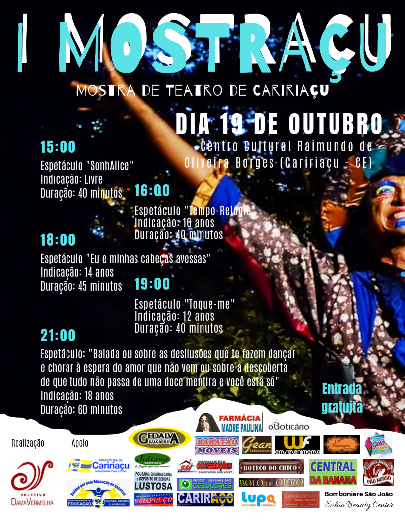 I MOSTRAÇU - Mostra de Teatro de Caririaçu. Realização: Coletivo Dama Vermelha. Vídeo e edição: Primordial Publicidades