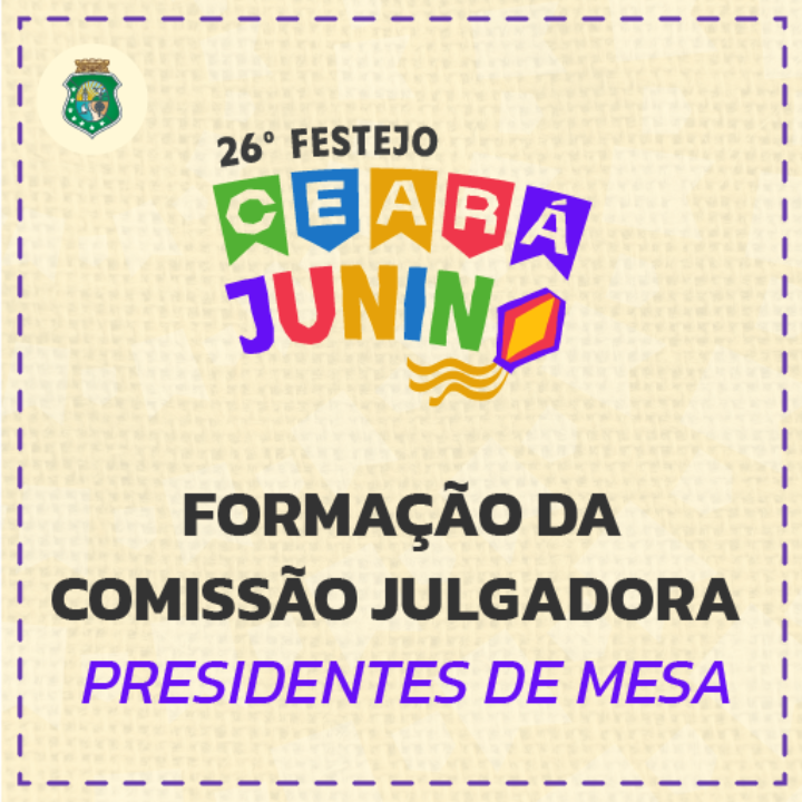 A Secretaria da Cultura abre inscrições para pessoas interessadas para compor as Comissões Julgadoras, na condição de jurados(as) ou Presidentes de Mesa, nas Etapas Regionais do Ciclo Ceará Junino de 2026.